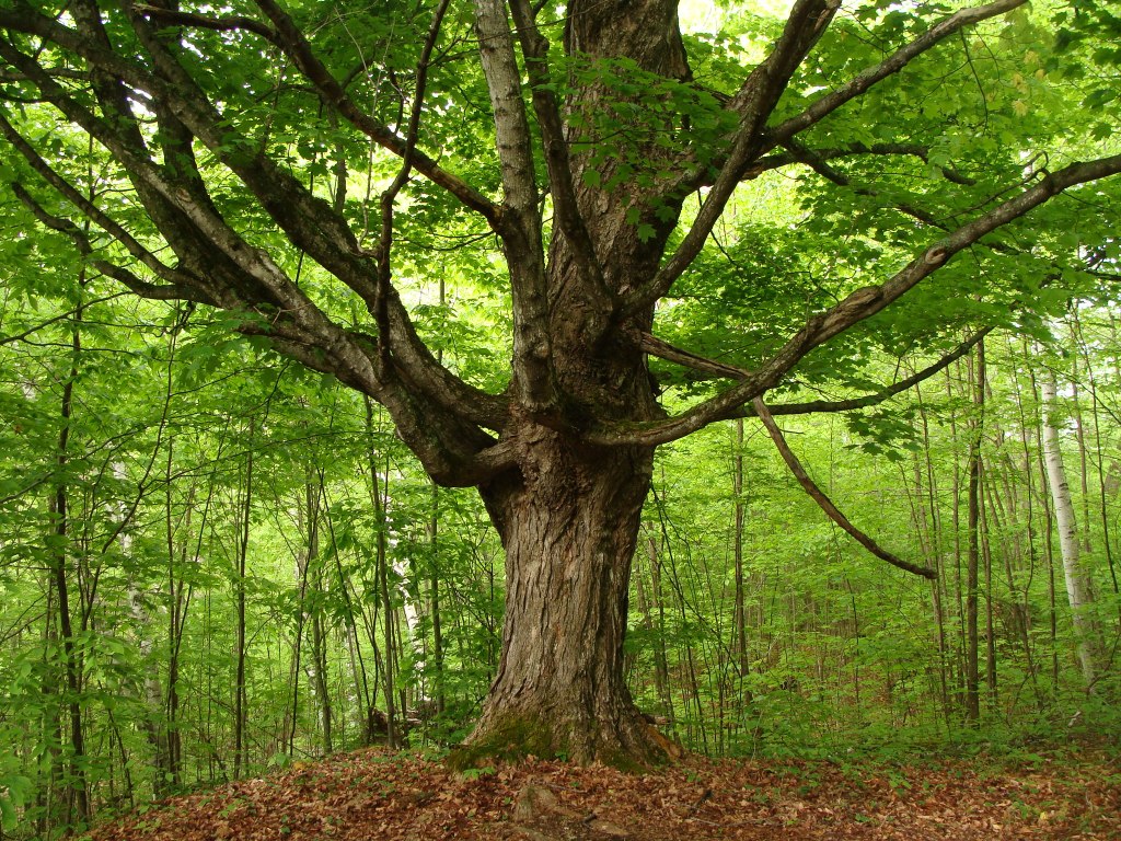 This great maple is growing in a landscape that the last glacial age scraped bare.  It feeds on soil formed over ten thousand years of patient building through cycles of life and death, decay and new birth.  The maple has found its own way to develop and create the structures it needs to reach the light.  It is a gift to countless lives, from birds and squirrels to spiders and beetles to mosses and microbes.  It inspires the humans who stand under it in awe.  Look at what is possible on this earth.
